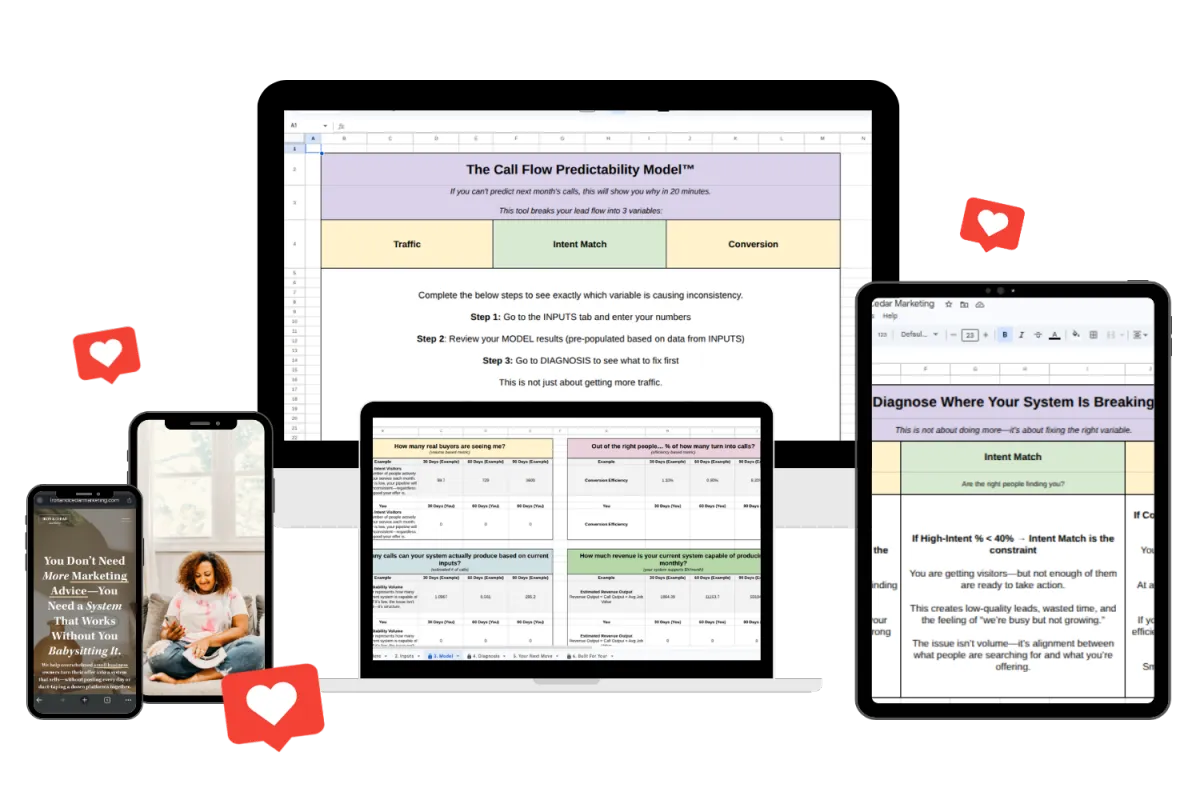 Stop the feast-or-famine cycle. This tool reveals the 3 critical levers you must control for a predictable flow of calls: Traffic, Intent Match, and Conversion Efficiency.